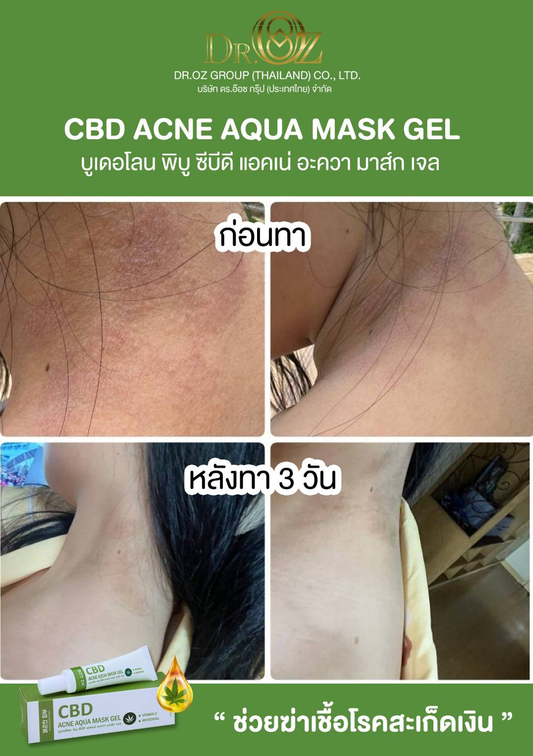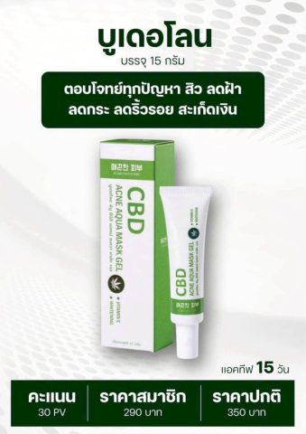 CBD Acne Mask Gel เจลมาส์กลดสิวจาก CBD ธรรมชาติ 100% ช่วยลดการอักเสบของสิว ลดรอยแดง และป้องกันการเกิดสิวใหม่ เหมาะสำหรับผิวที่มีปัญหาสิว ผิวมันและผิวผสม ใช้ง่าย ไม่ทำให้ผิวแห้ง