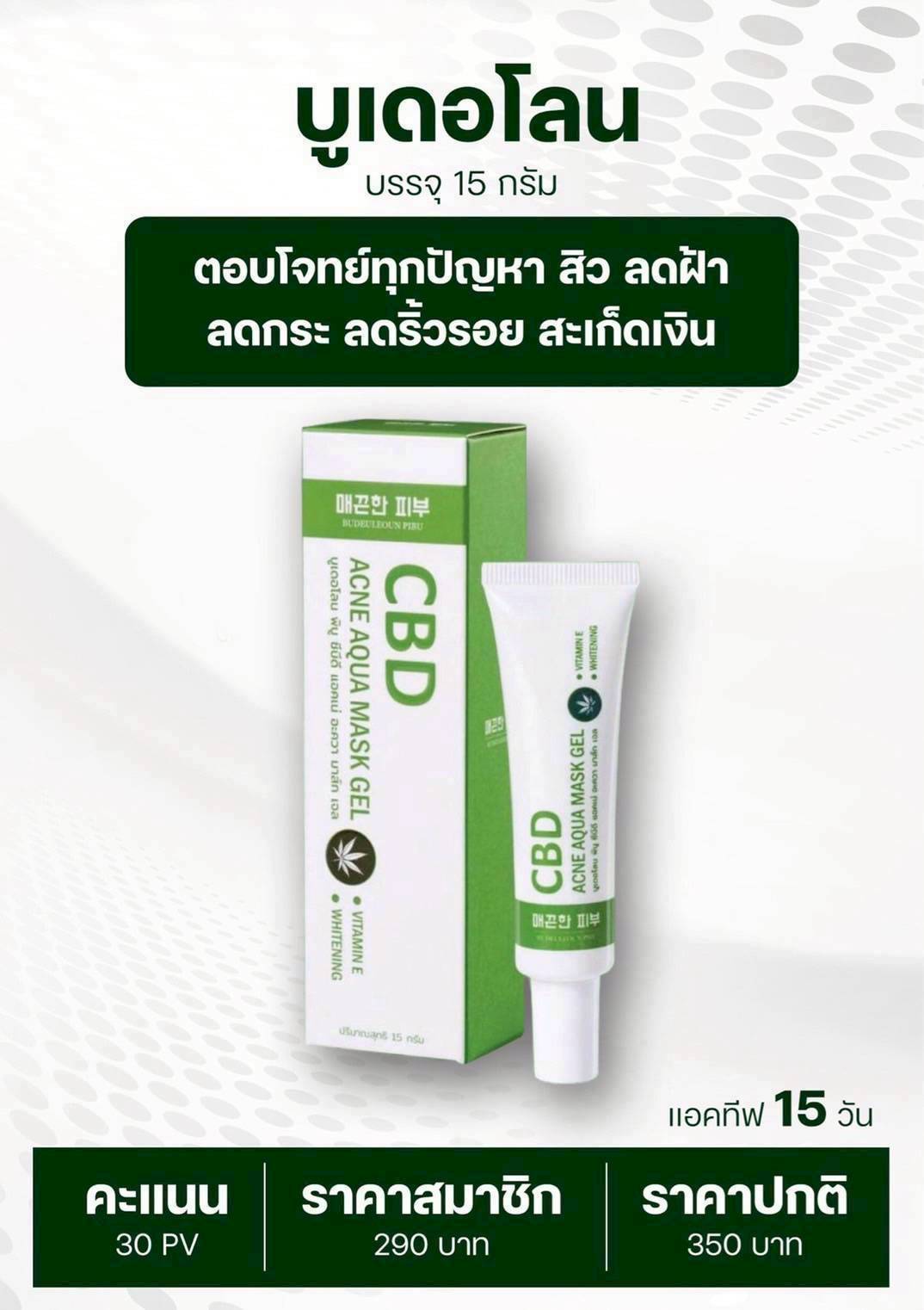 ผลิตภัณฑ์งานวิจัยของ รองศาสดาจารย์ ดร.วีระชัย พุทธวงศ์ บูเดอโลน พิบู ตอบโจทย์ปัญหา สิว ลดฝ้า ลดริ้วรอย สะเก็ดเงิน บูเดอโลน มีสารสกัด CBD 1% โดยน้ำหนักตามเกณฑ์ที่ อย.กำหนด