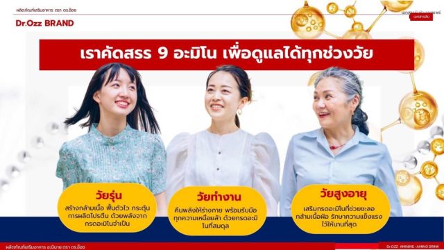 - 💼 วัยทำงาน: เน้น “คืนพลัง” พร้อมรับมือความเหนื่อยล้าสะสม ด้วยกรดอะมิโนที่ช่วยปรับสมดุลร่างกายและสมอง
