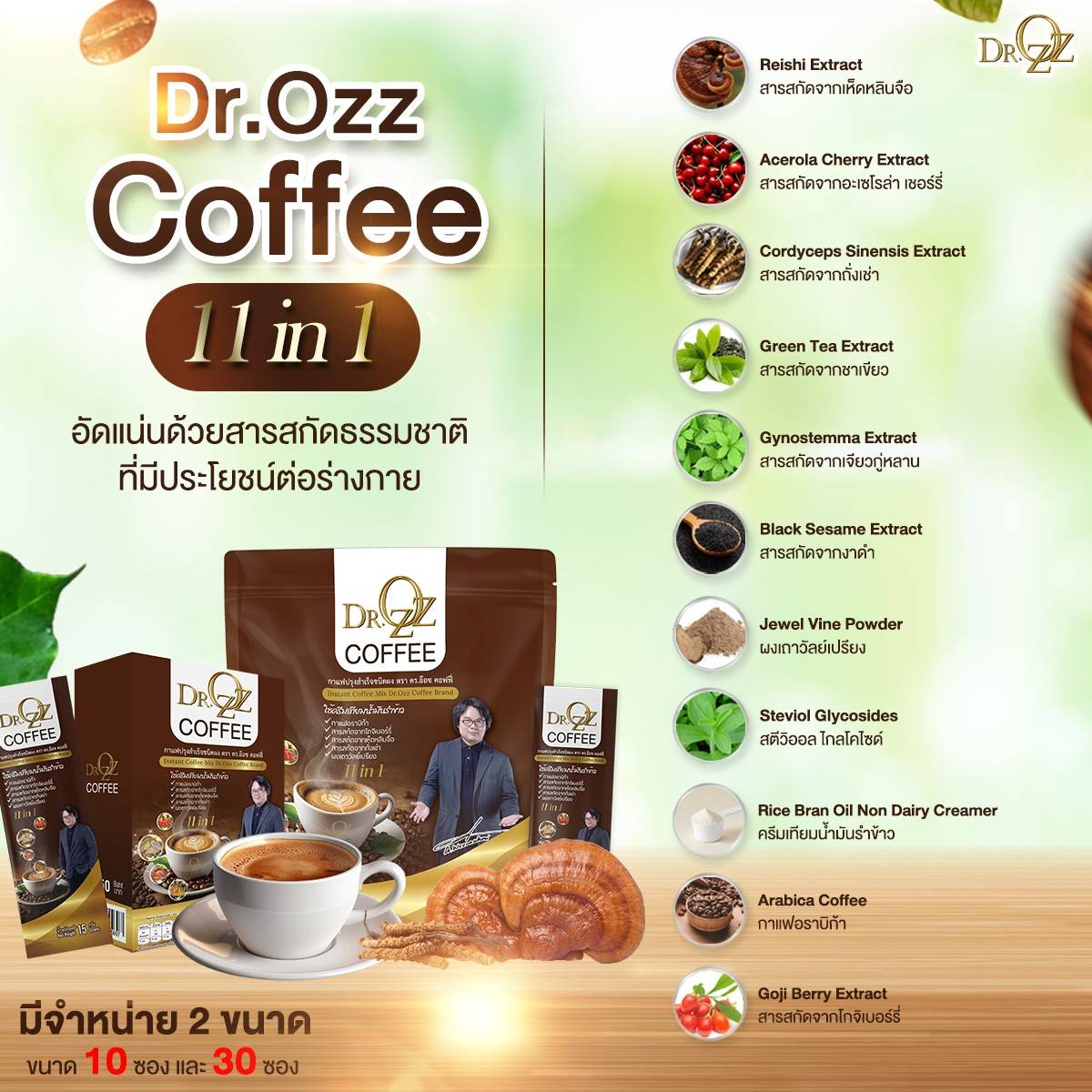 Dr. Ozz Coffee ไม่ใช่แค่กาแฟ แต่เป็น กาแฟเพื่อสุขภาพ ที่ออกแบบมาเพื่อยกระดับการดูแลร่างกาย ด้วยส่วนผสมอย่าง เถาวัลย์เปรียง ที่ช่วยลดปวดเมื่อยและเสริมภูมิคุ้มกัน ผสานเมล็ดกาแฟอาราบิก้าคุณภาพสูงจากบราซิล รสชาตินุ่มนวล กลิ่นหอม