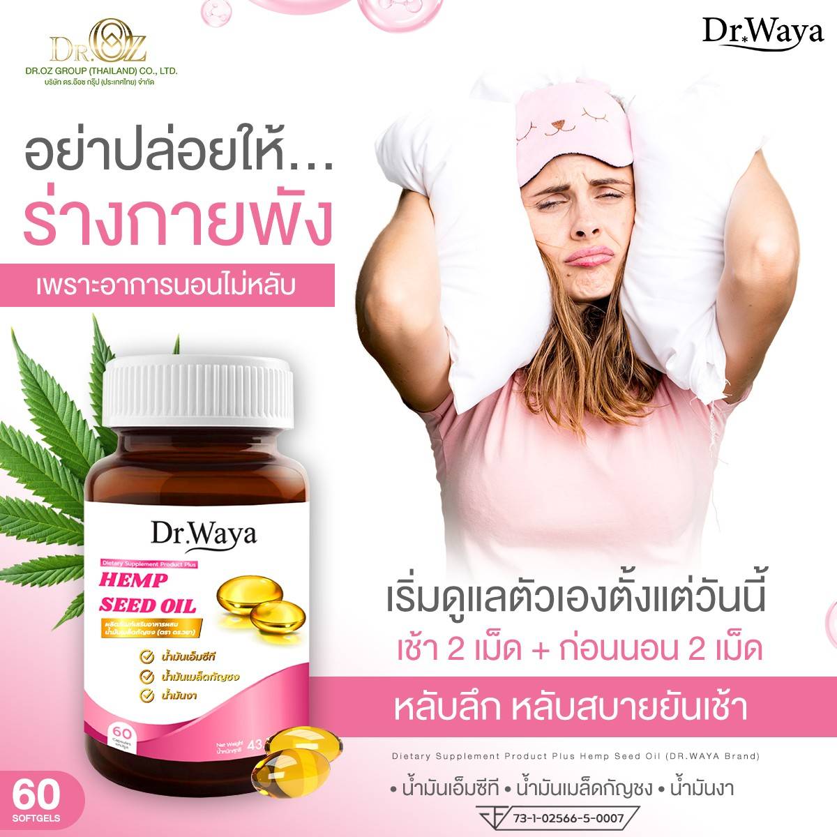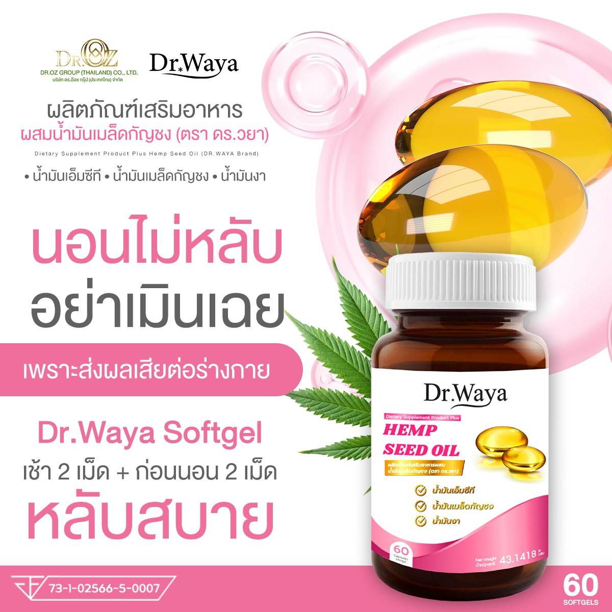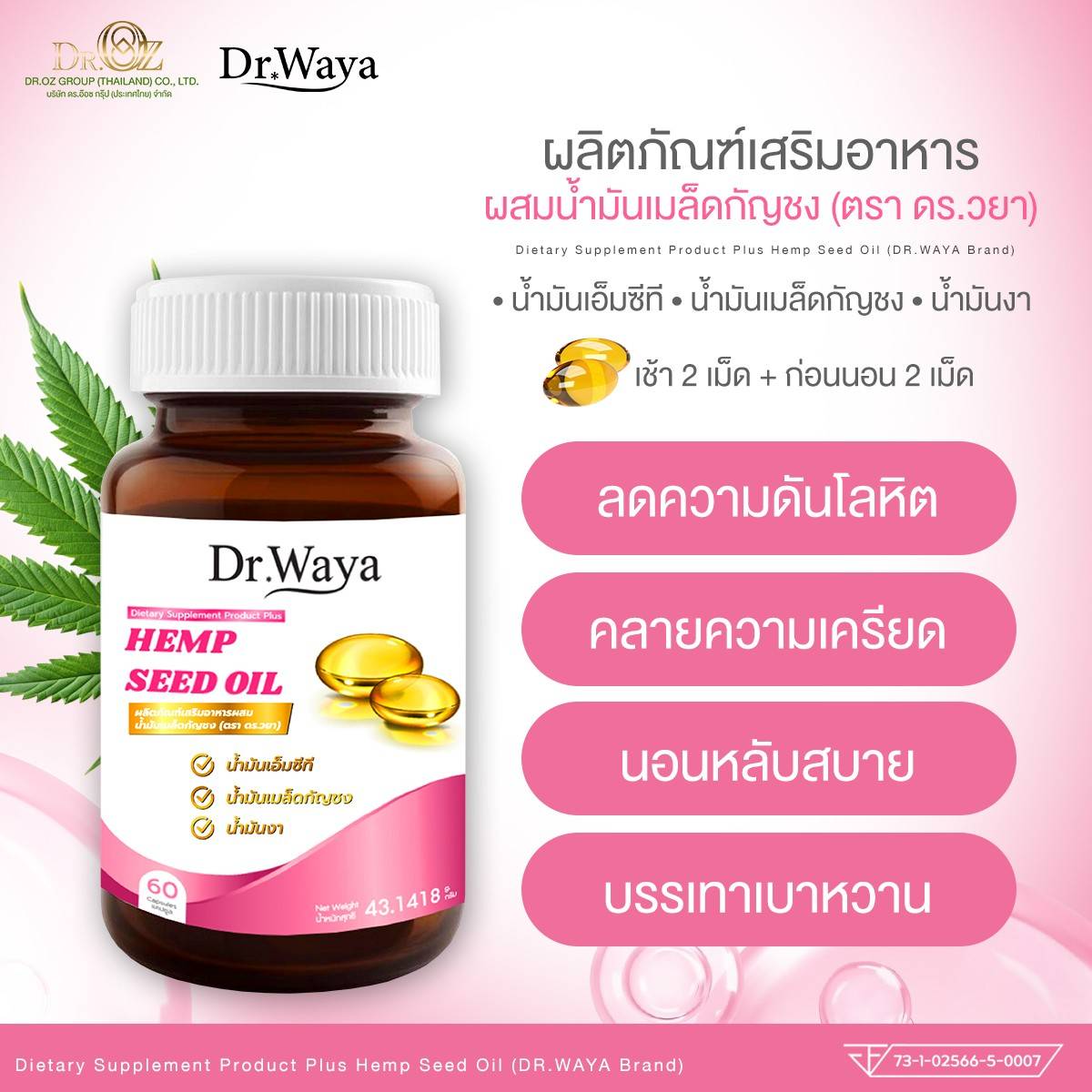 Dr.Waya Hemp Seed Oil (กล่อง 30 ซอฟเจล)